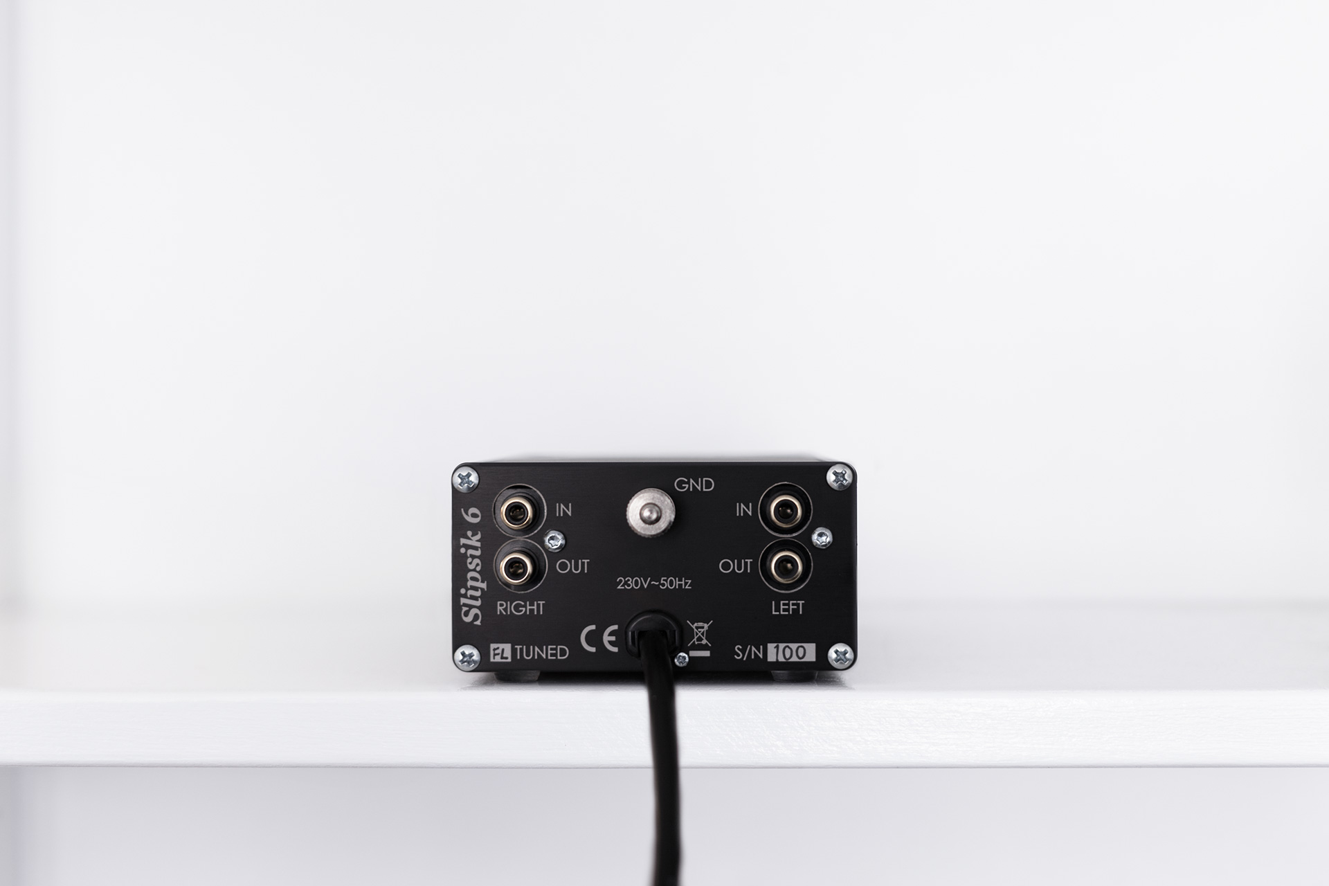 A dual mono design with individually measured and selected components, sensitive signals are buried inside the circuit board, between multiple narrowly spaced layers of copper. The power cord inside Slipsik 8 is also screened with an insulated thin-walled solid copper tube, which is soldered to the chassis in both ends. This improves performance by preventing both mains hum and radio frequencies from reaching the circuits where the music travels.